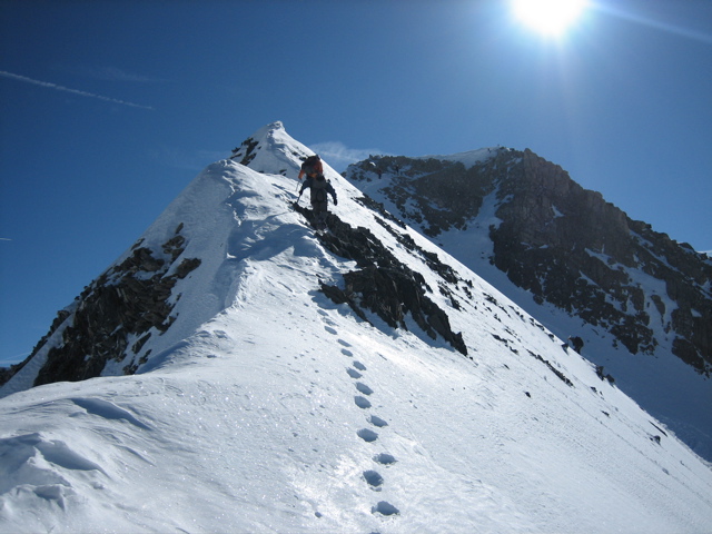 crête Ouest du sommet et nous terminons l'ascension au soleil, il